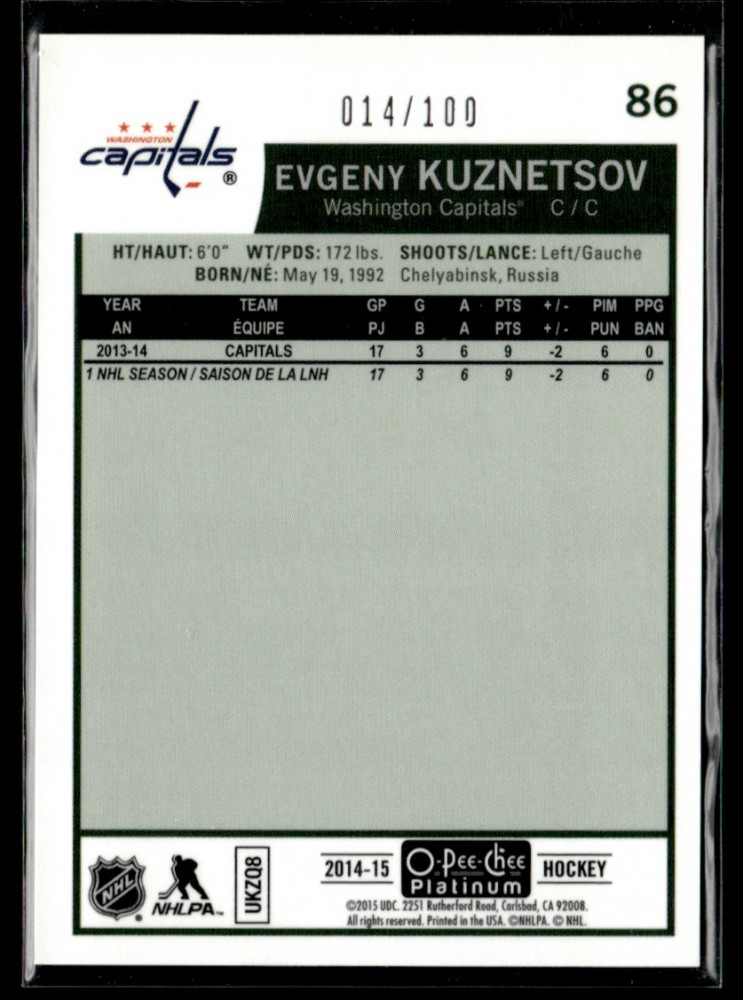 2014 O-Pee-Chee Platinum Retro Rainbow Black  #86 Evgeny Kuznetsov 014/100