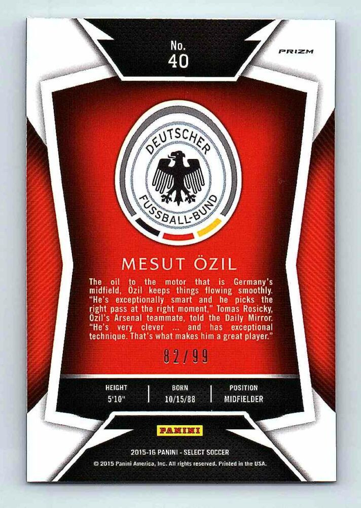2015-16 Select Soccer Base Purple Prizm #40 Mesut Ozil 82/99