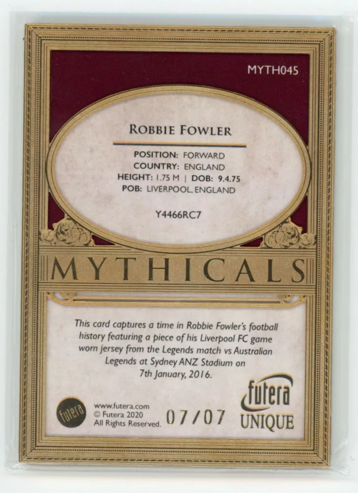 2020 Futera Unique World Football MYTHICALS 24KT Plated #MYTH045 Robbie Fowler 07/07