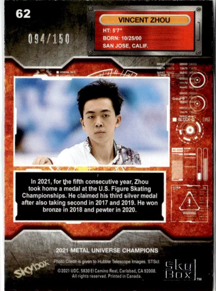 2021-22 Metal Universe Champions Precious Metal Gems Red #62 Vincent Zhou 094/150