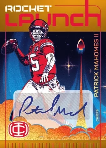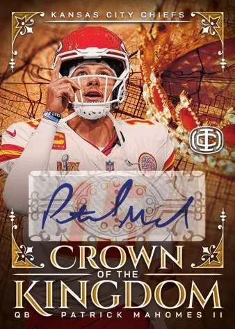 Find incredible inserts with exclusive autograph parallels from Patrick Mahomes like Crown of the Kingdom, Rocket Launch and Mahomes Magic!