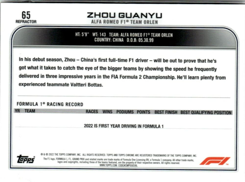 2022 Topps Chrome Formula 1 Racing Refractor #65 Zhou Guanyu