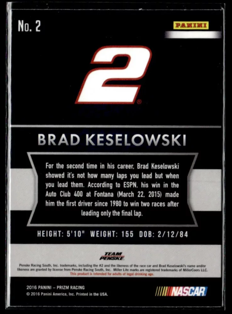 2016 Panini Prizm  #2 Brad Keselowski