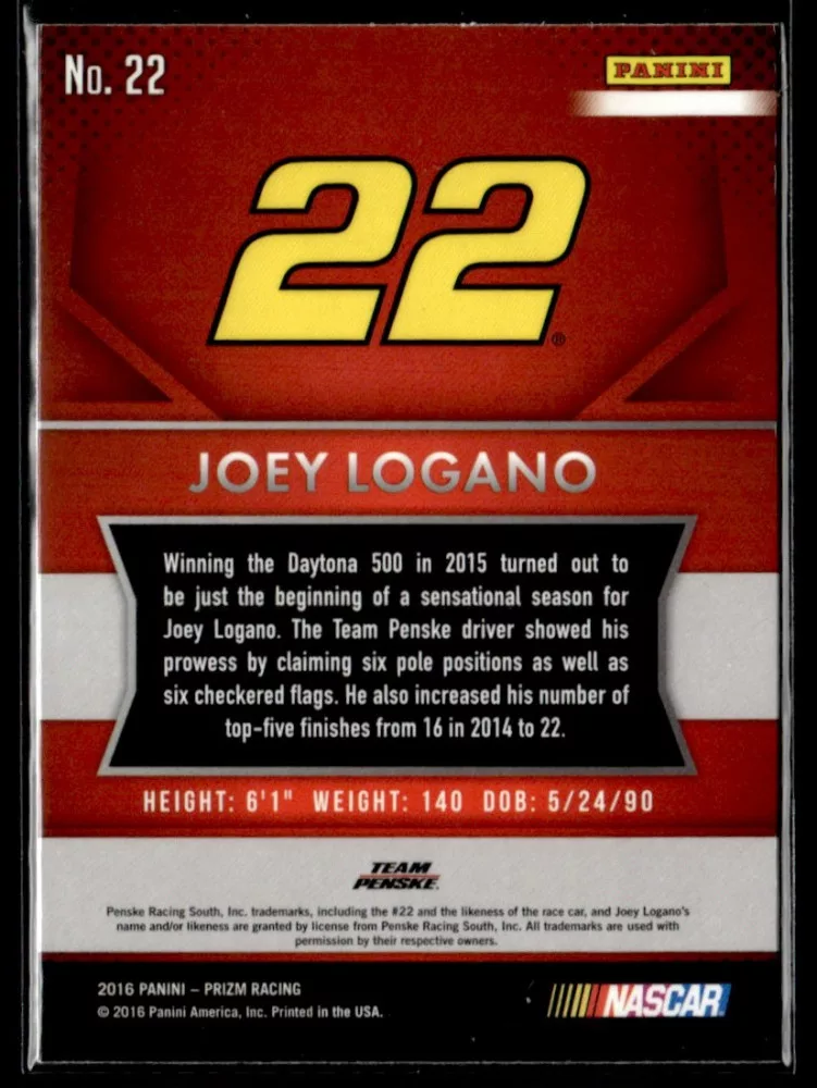 Az eladásra kínált 2016 Panini Prizm #22 Joey Logano Formula 1 kártya NM-MT állapotban van. A Formula1 kártyákat legtöbb esetben UP Platinum/Standard puha védőtokban és/vagy UP Toploader (kemény védőtok)-ben küldjük.