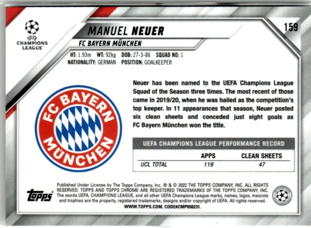 2021-22 Topps Chrome UEFA Champions League  #159 Manuel Neuer