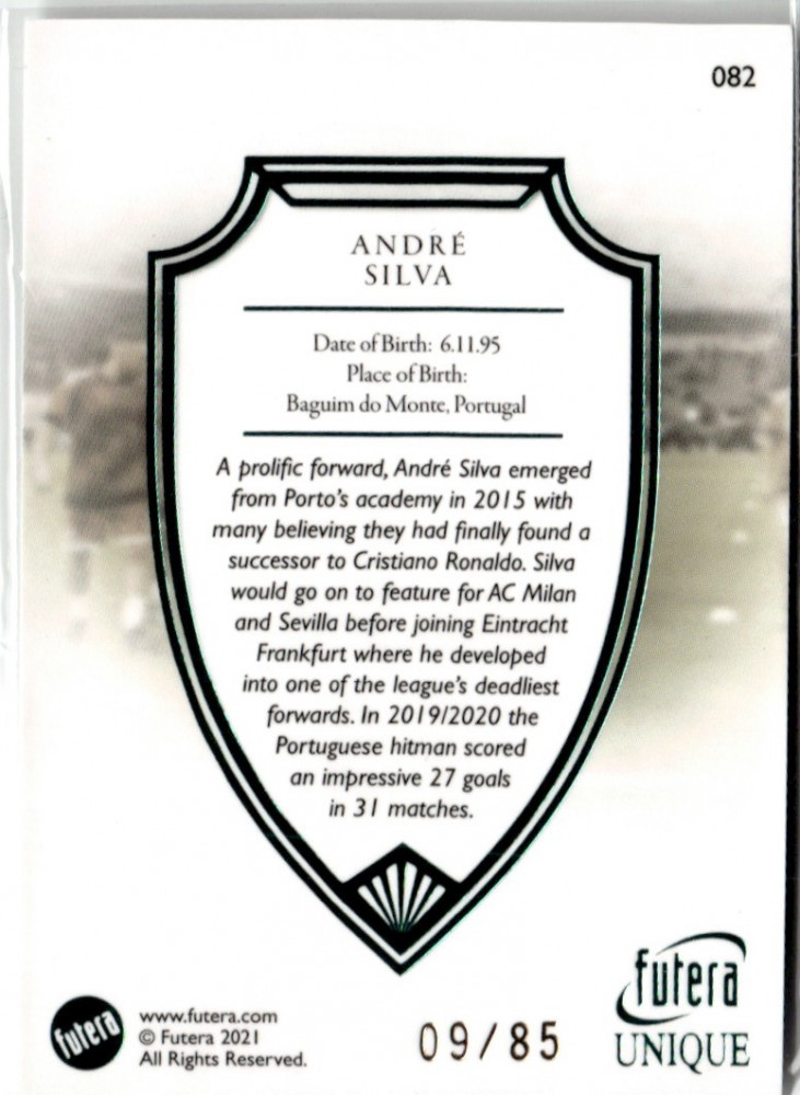 2021 Futera Unique World Football FORWARD - Turquoise (Jersey Number) #82 Andre Silva 09/85