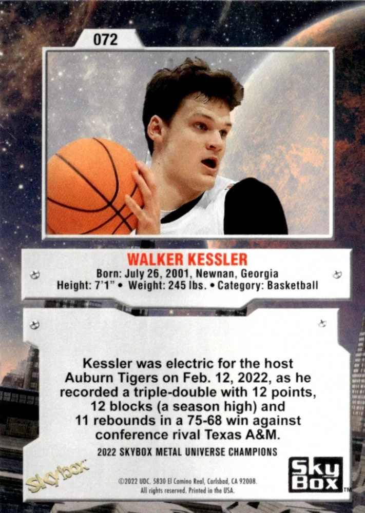Az eladásra kínált 2022-23 Skybox Metal Universe Champions #72 Walker Kessler kártya NM-MT állapotban van. A kártyákat legtöbb esetben UP Platinum/Standard puha védőtokban és/vagy UP Toploader (kemény védőtok)-ben küldjük.