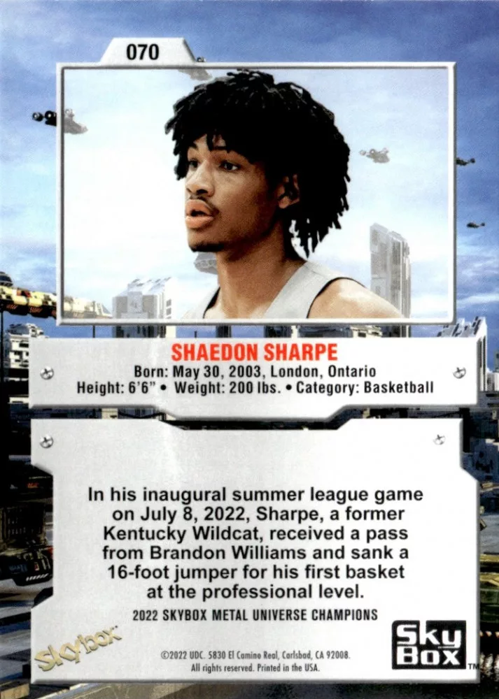 2022-23 Skybox Metal Universe Champions #70 Shaedon Sharpe