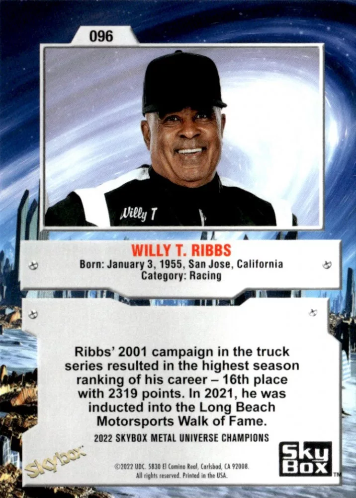 Az eladásra kínált 2022-23 Skybox Metal Universe Champions #96 Willy T. Ribbs kártya NM-MT állapotban van. A kártyákat legtöbb esetben UP Platinum/Standard puha védőtokban és/vagy UP Toploader (kemény védőtok)-ben küldjük.