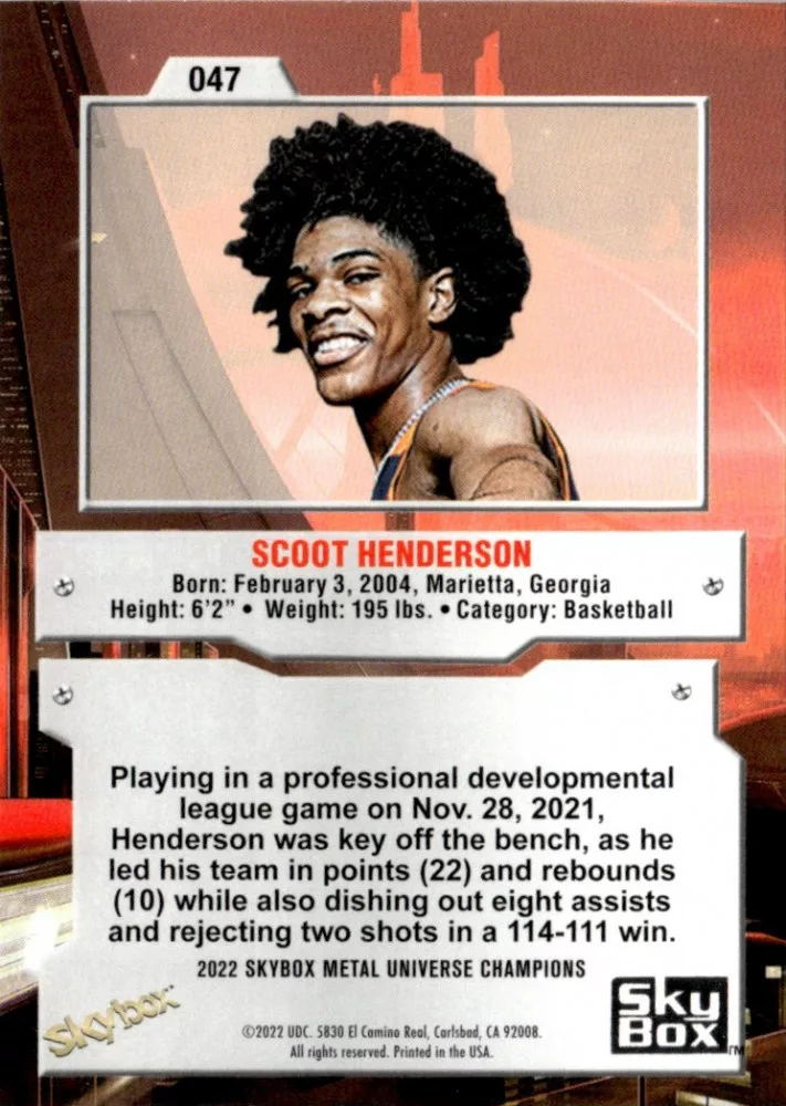 2022-23 Skybox Metal Universe Champions #47 Scoot Henderson
