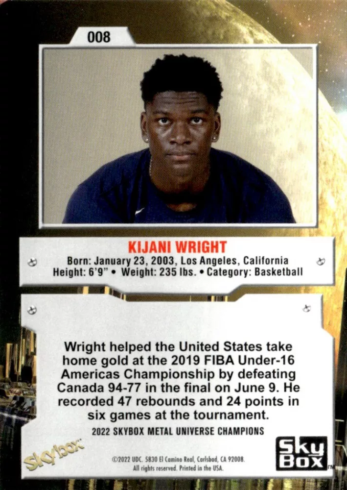 2022-23 Skybox Metal Universe Champions #8 Kijani Wright