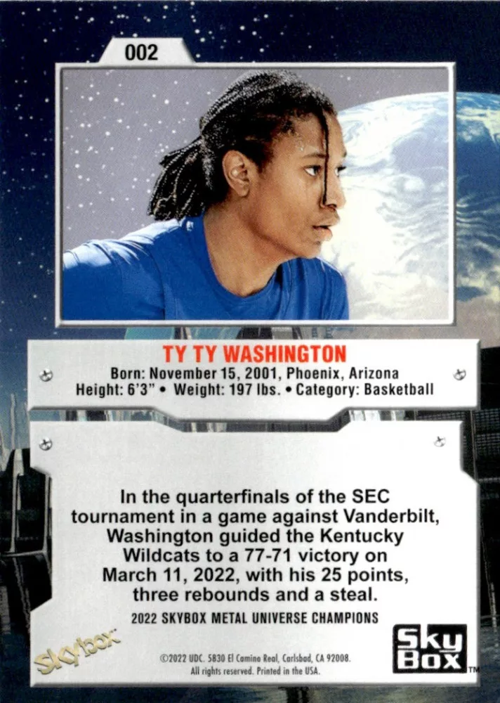 2022-23 Skybox Metal Universe Champions  #2 TyTy Washington Jr.