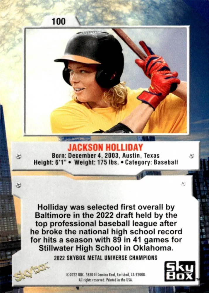 2022-23 Skybox Metal Universe Champions #100 Jackson Holliday