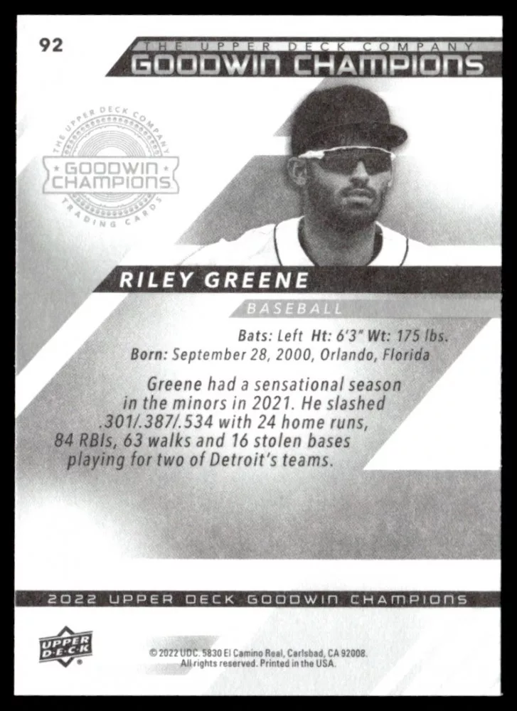 2022-23 Upper Deck Goodwin Champions #92 Riley Greene
