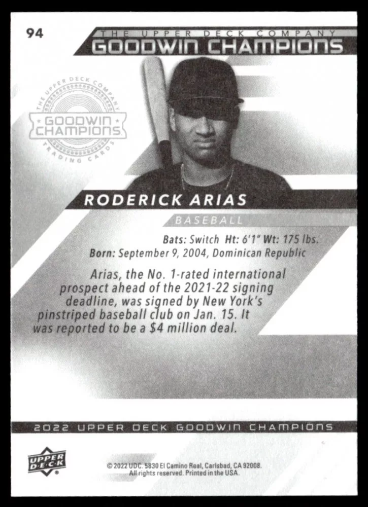 2022-23 Upper Deck Goodwin Champions #94 Roderick Arias