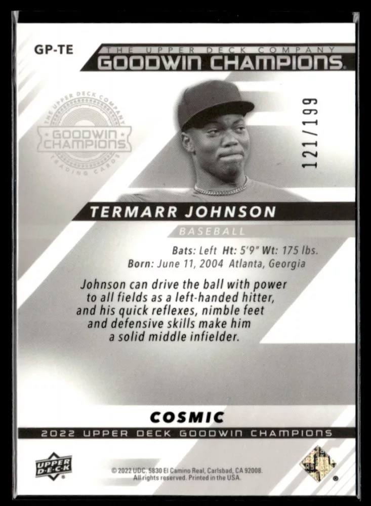 2022-23 Upper Deck Goodwin Champions Platinum High Series Cosmic #GPTE Termarr Johnson 121/199