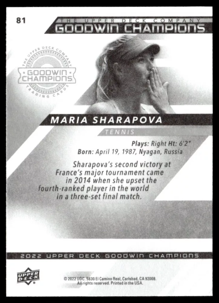 2022-23 Upper Deck Goodwin Champions #81 Maria Sharapova