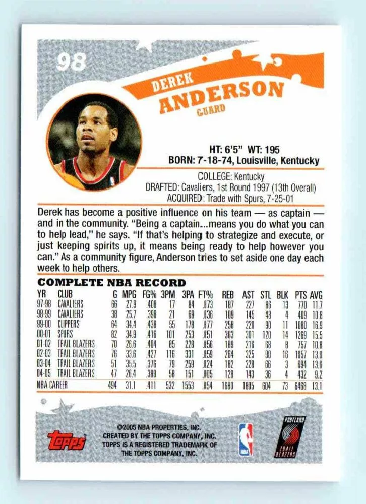2005-06 Topps Basketball #98 Derek Anderson