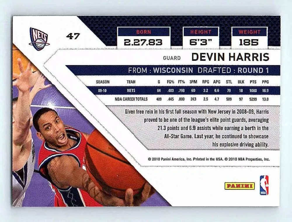 The 2010-11 Panini Threads Base #47 Devin Harris is in NM-MNT condition or better. The basketball cards come in sleeve and/or in toploader. Optionally you can buy One Touch holder