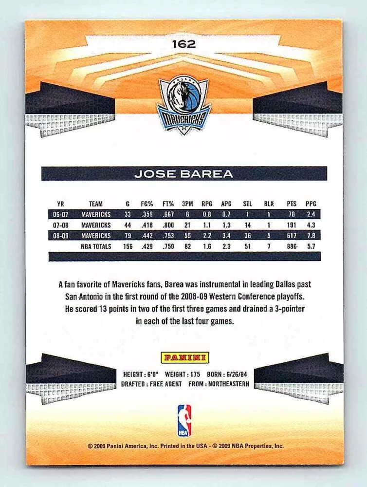 The 2009-10 Panini Basketball Base #162 Jose Barea is in NM-MNT condition or better. The basketball cards come in sleeve and/or in toploader. Optionally you can buy One Touch holder