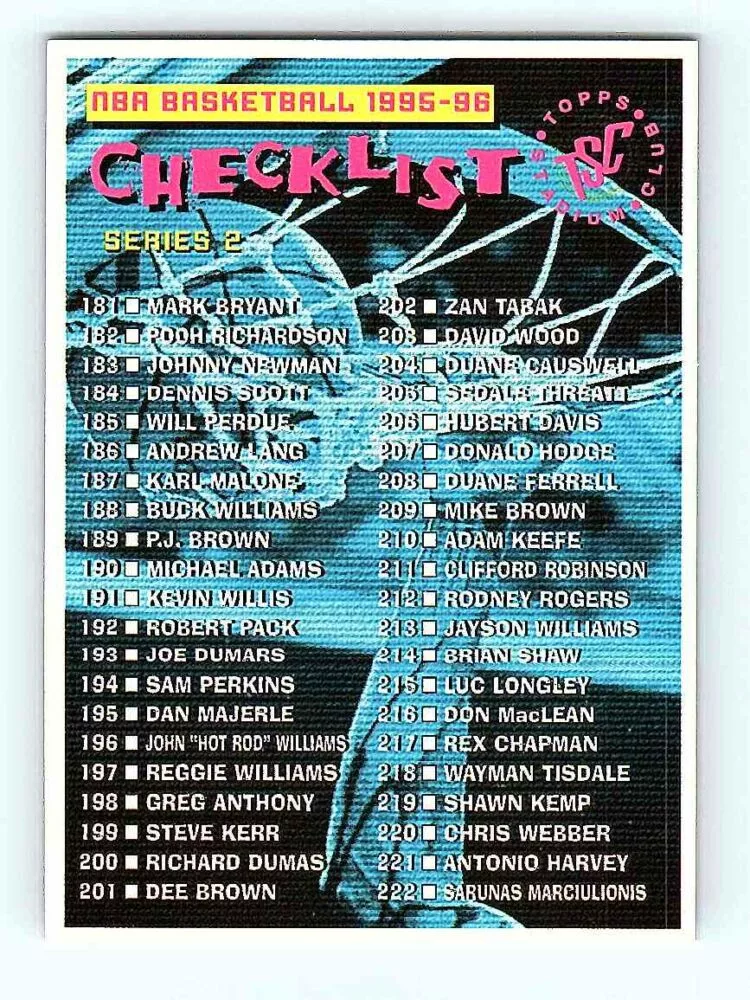 The 1995-96 Topps Stadium Club Series 2 Checklist #CL3 Checklist basketball card is in NM-MT condition. We send the basketball cards in sleeves and/or toploaders.