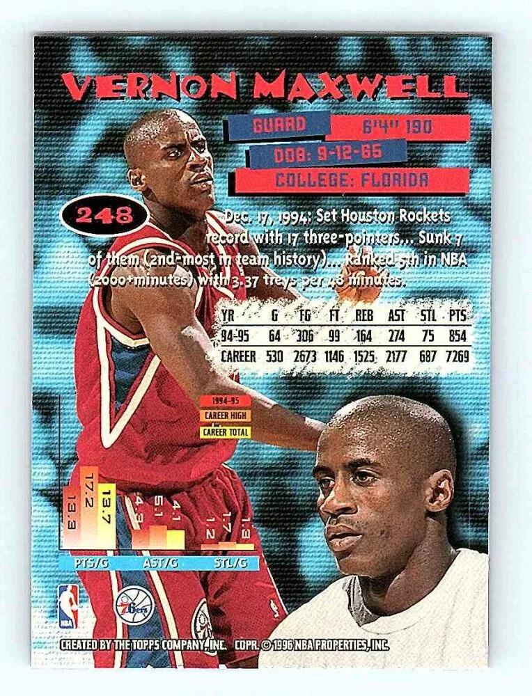 The 1995-96 Topps Stadium Club Series 2 Base #248 Vernon Maxwell basketball card is in NM-MT condition. We send the basketball cards in sleeves and/or toploaders.