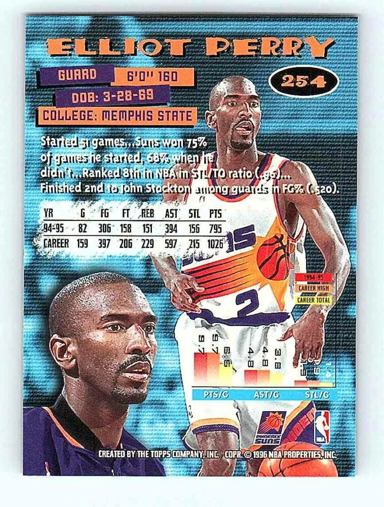 The 1995-96 Topps Stadium Club Series 2 Base #254 Elliot Perry basketball card is in NM-MT condition. We send the basketball cards in sleeves and/or toploaders.