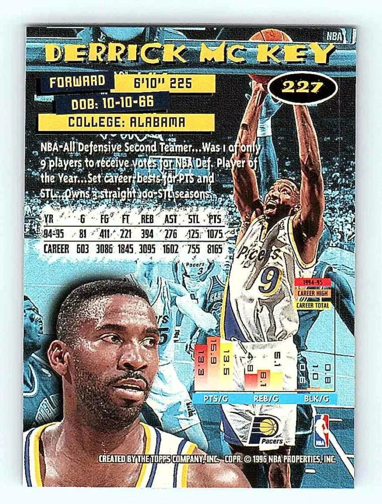 The 1995-96 Topps Stadium Club Series 2 Base #227 Derrick Mc Key basketball card is in NM-MT condition. We send the basketball cards in sleeves and/or toploaders.