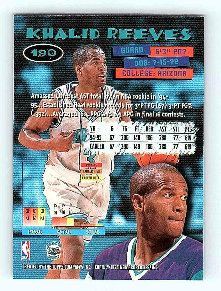 The 1995-96 Topps Stadium Club Series 2 Base #190 Khalid Reeves basketball card is in NM-MT condition. We send the basketball cards in sleeves and/or toploaders.