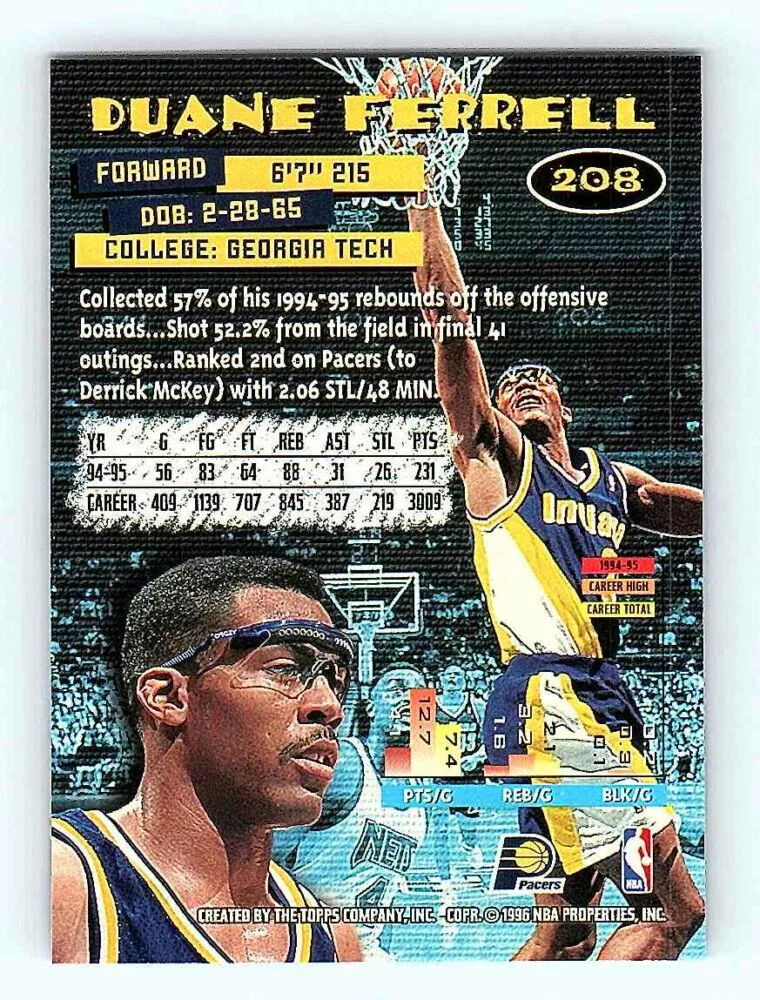 The 1995-96 Topps Stadium Club Series 2 Base #208 Duane Ferrell basketball card is in NM-MT condition. We send the basketball cards in sleeves and/or toploaders.