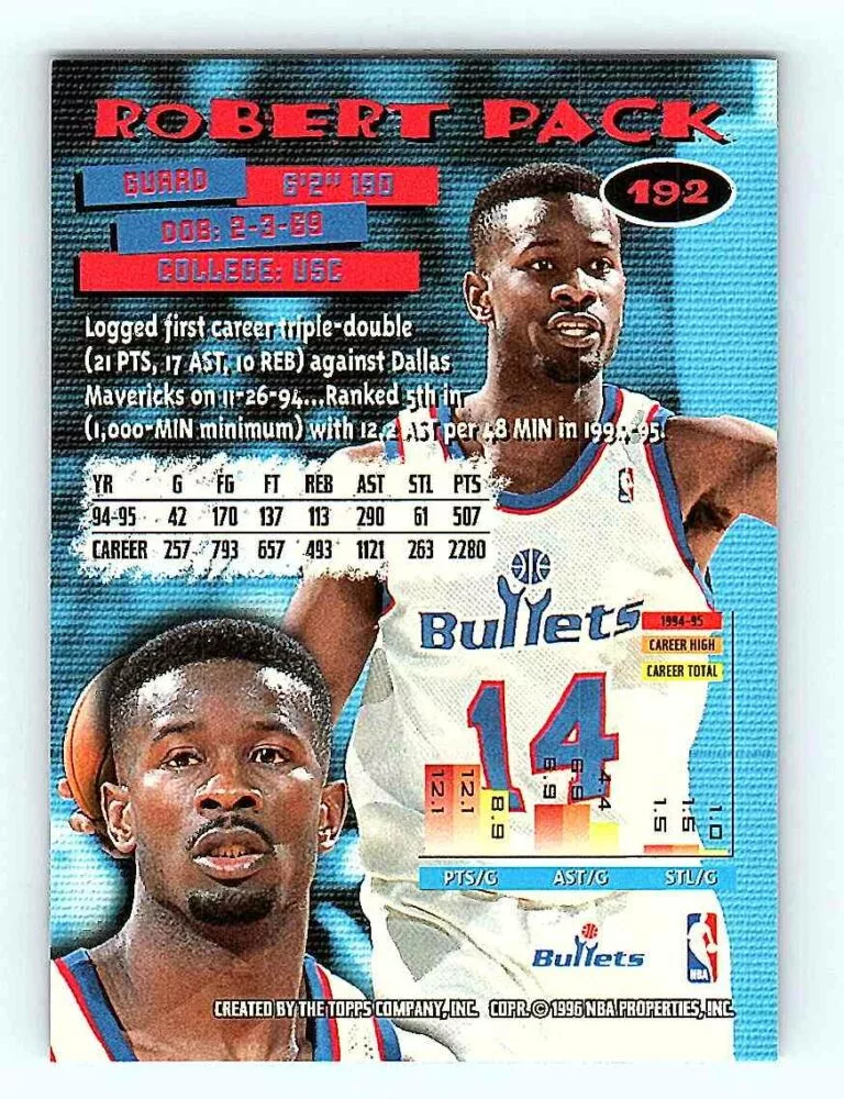 The 1995-96 Topps Stadium Club Series 2 Base #192 Robert Pack basketball card is in NM-MT condition. We send the basketball cards in sleeves and/or toploaders.