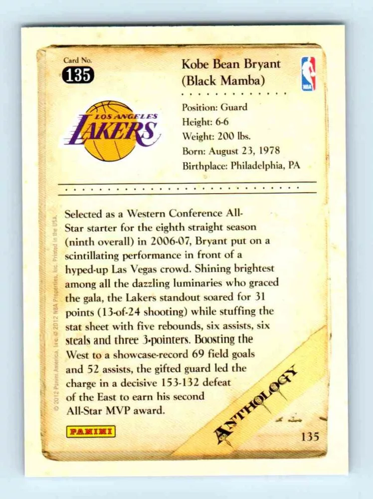 2012 Kobe Anthology Base # 135 Kobe Bryant