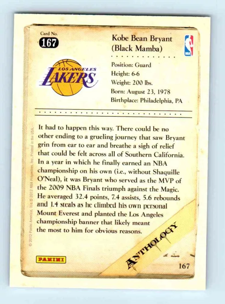 2012 Kobe Anthology Base # 167 Kobe Bryant