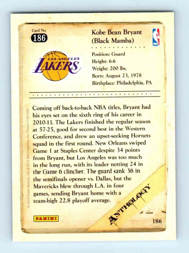 2012 Kobe Anthology Base # 186 Kobe Bryant