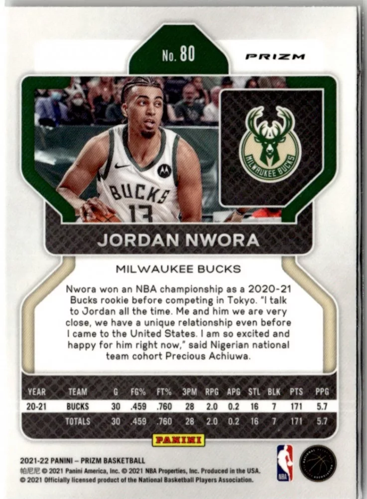 2021-22 Panini Prizm Red White and Blue Prizms #80 Jordan Nwora