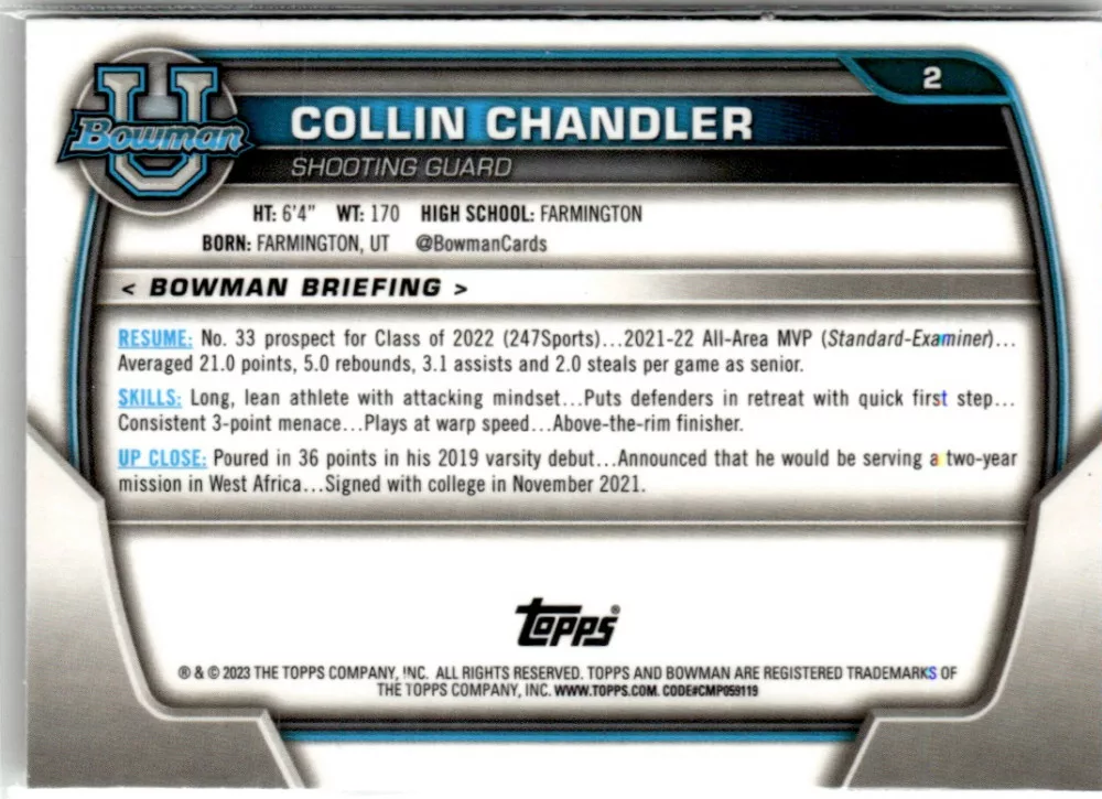 2022-23 Bowman Chrome University  #2 Collin Chandler