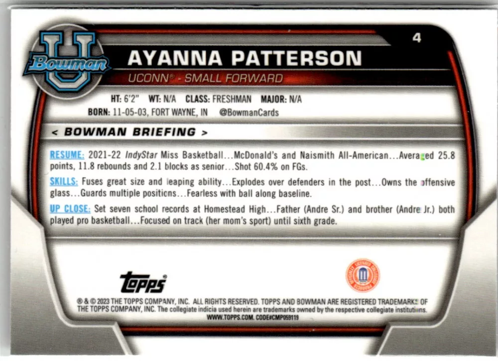 2022-23 Bowman Chrome University  #4 Ayanna Patterson