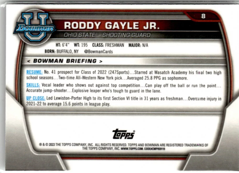 2022-23 Bowman Chrome University  #8 Roddy Gayle Jr.