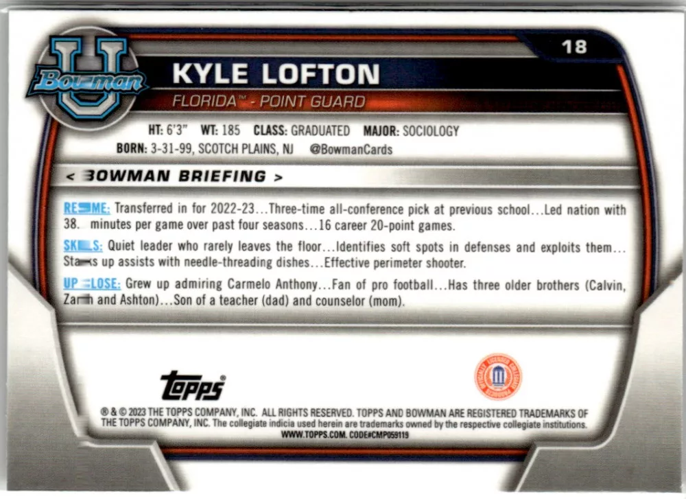 2022-23 Bowman Chrome University  #18 Kyle Lofton