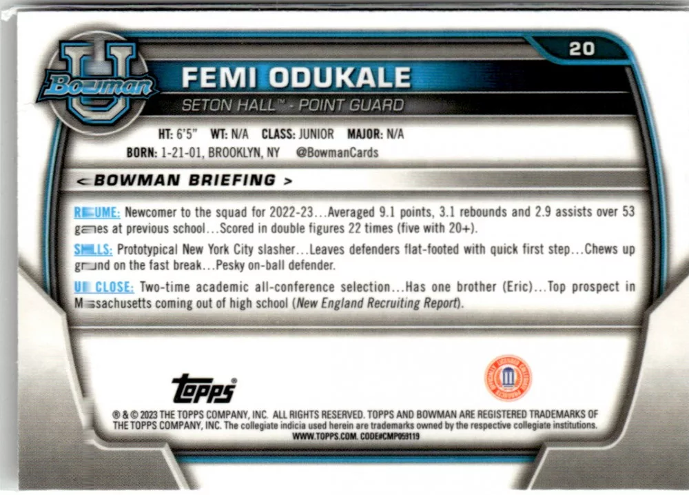 2022-23 Bowman Chrome University  #20 Femi Odukale