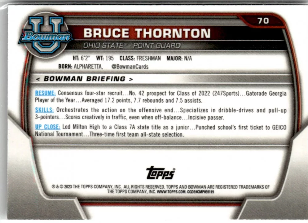 2022-23 Bowman Chrome University  #70 Bruce Thornton