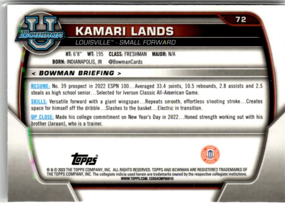 2022-23 Bowman Chrome University  #72 Kamari Lands