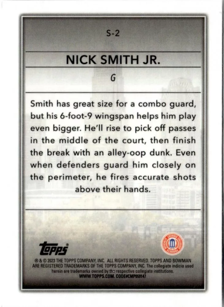 2022-23 Bowman Chrome University Skyscraping #S-2 Nick Smith Jr.