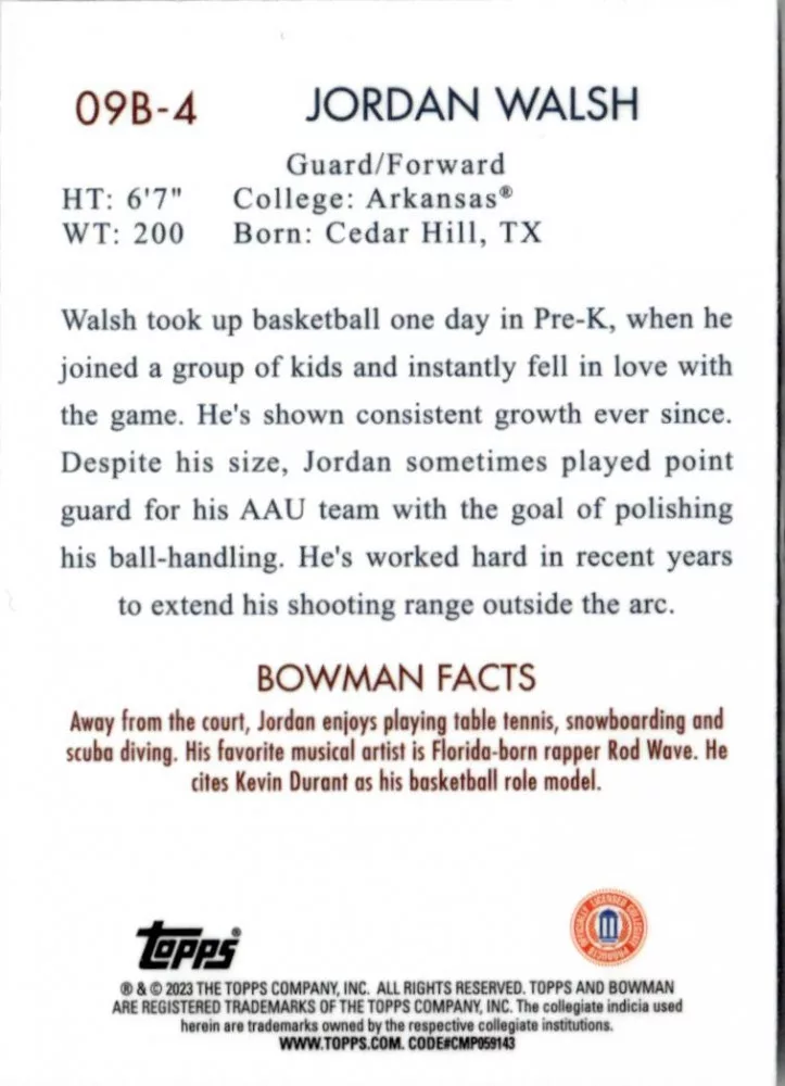 2022-23 Bowman Chrome University 2009 #09B-4 Jordan Walsh