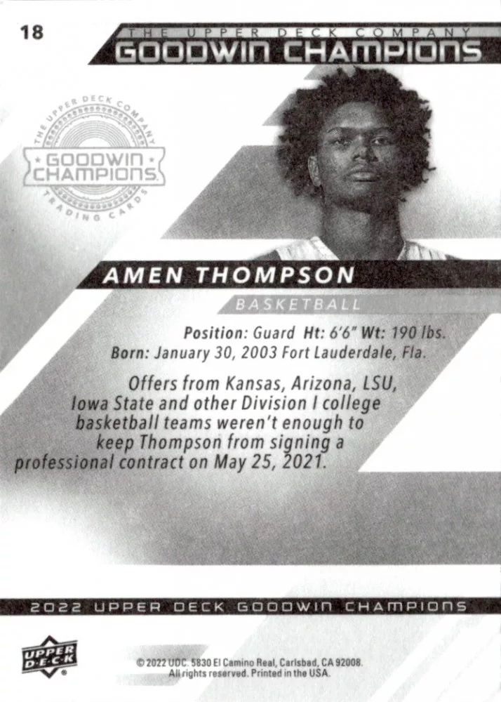 2022-23 Upper Deck Goodwin Champions  #18 Amen Thompson