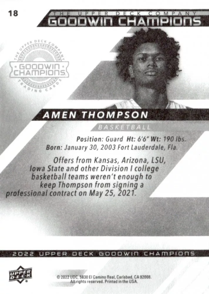 2022-23 Upper Deck Goodwin Champions #18 Amen Thompson