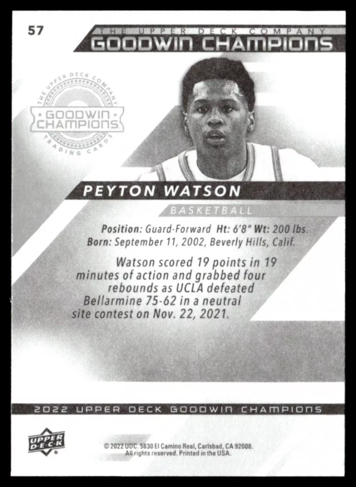 2022-23 Upper Deck Goodwin Champions #57 Peyton Watson