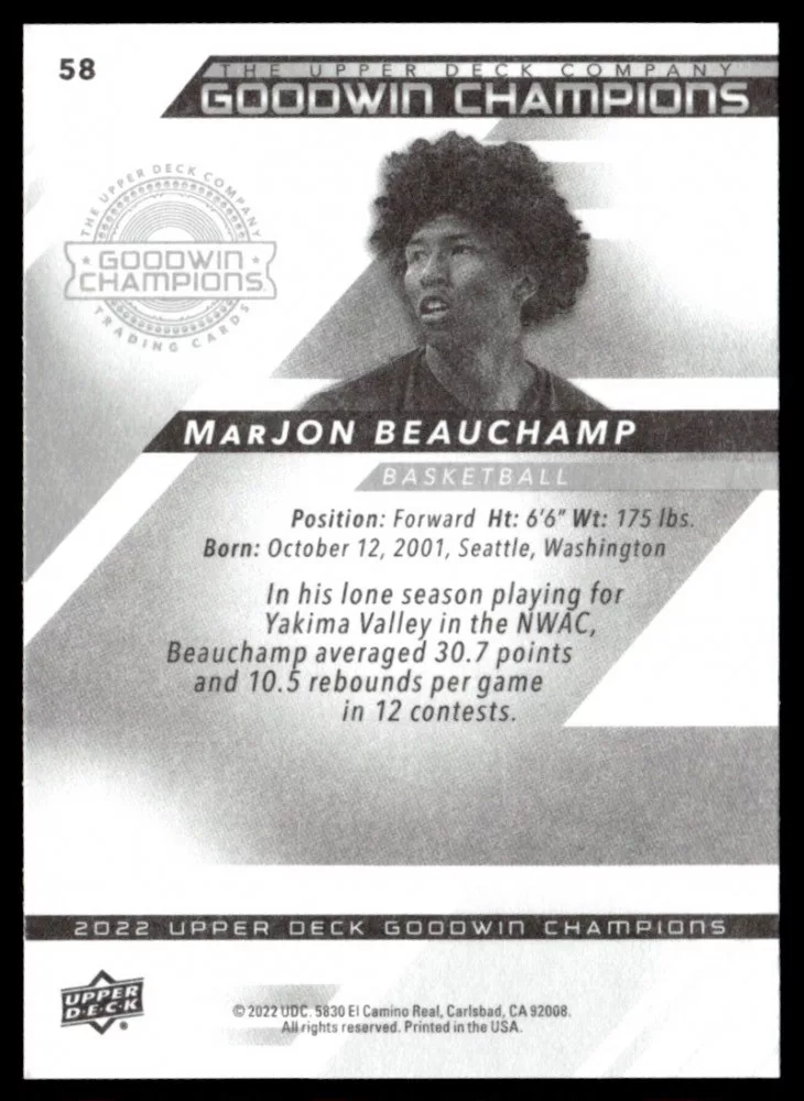 2022-23 Upper Deck Goodwin Champions #58 Marjon Beauchamp
