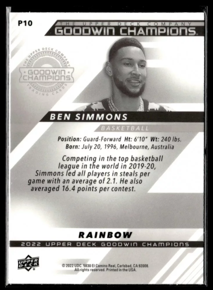 2022-23 Upper Deck Goodwin Champions Platinum Rainbow #P10 Ben Simmons