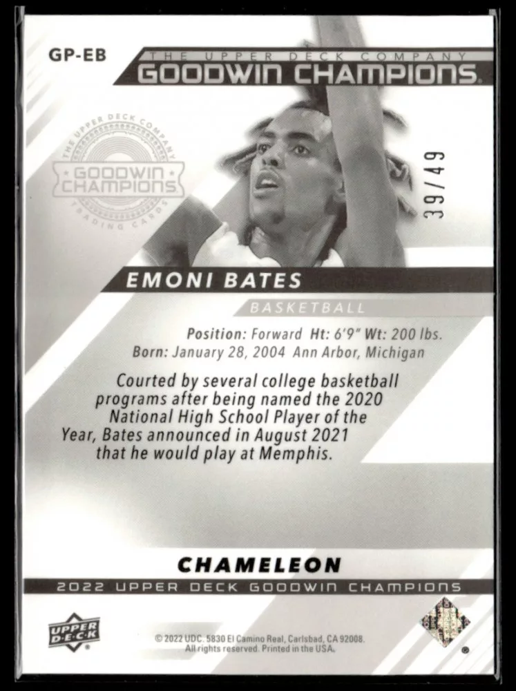 2022-23 Upper Deck Goodwin Champions Platinum High Series Chameleon #GP-EB Emoni Bates 39/49